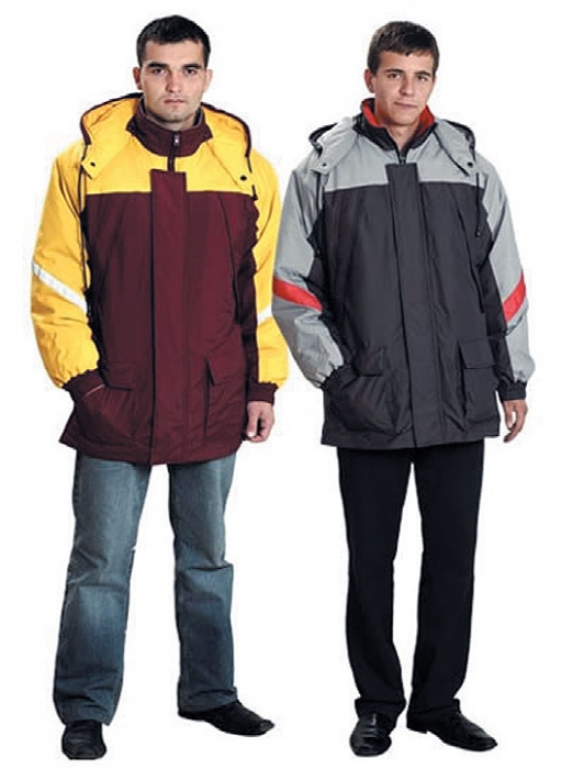 Куртка с центральной застежкой на «молнию» с ветрозащитной планкой и отстегивающимся капюшоном. На полочках 4 внутренних кармана, ширина куртки по талии регулируется кулиской.